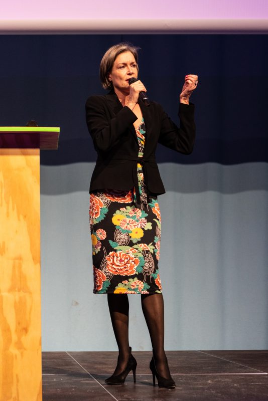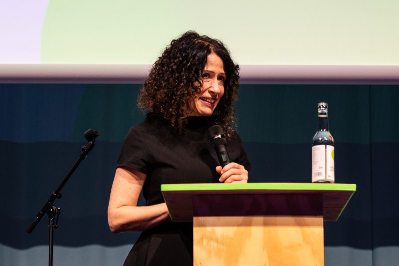 Durch den Abend leitete Moderatorin Dinah Hoffmann, stellvertretende Projektleiterin der Kantine Zukunft. Bürgermeisterin und Senatorin für Umwelt, Mobilität, Verbraucher- und Klimaschutz Bettina Jarasch eröffnete die Veranstaltung mit einem Grußwort. Darin dankte auch sie allen Akteur*innen der Gemeinschaftsgastronomie dafür, den Wandel der Gemeinschaftsgastronomie mitzugestalten und betonte die soziale Funktion von Kantinen und Ernährung.