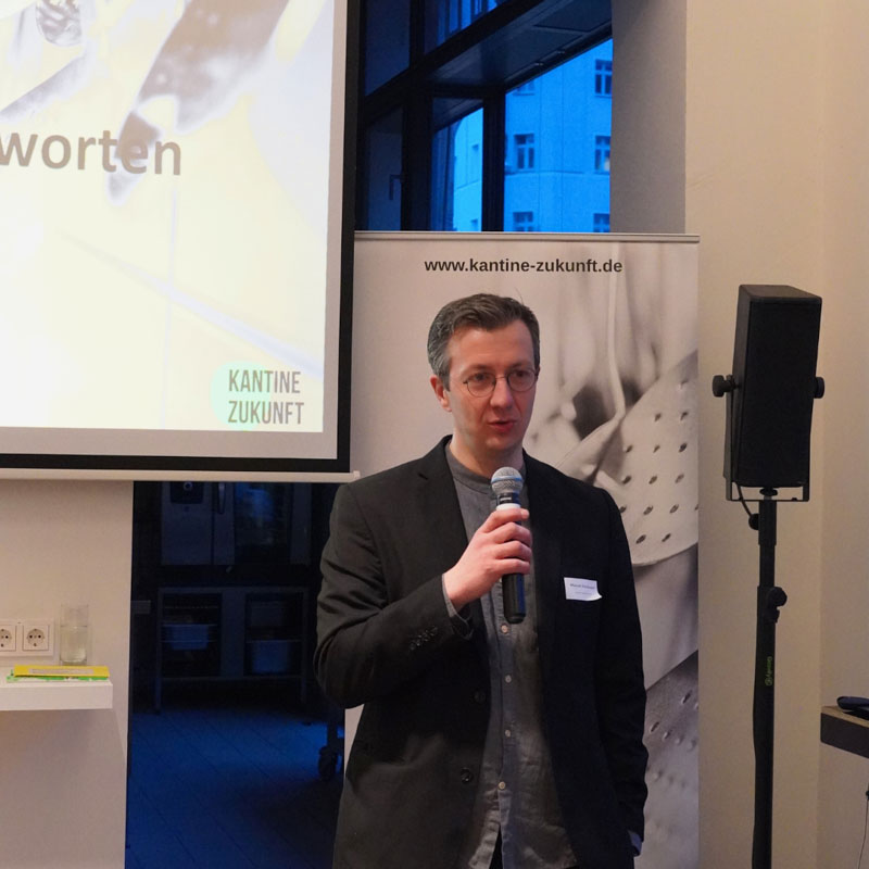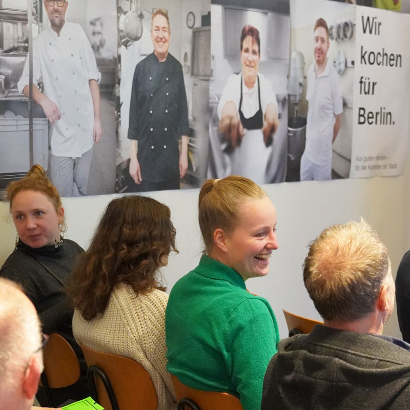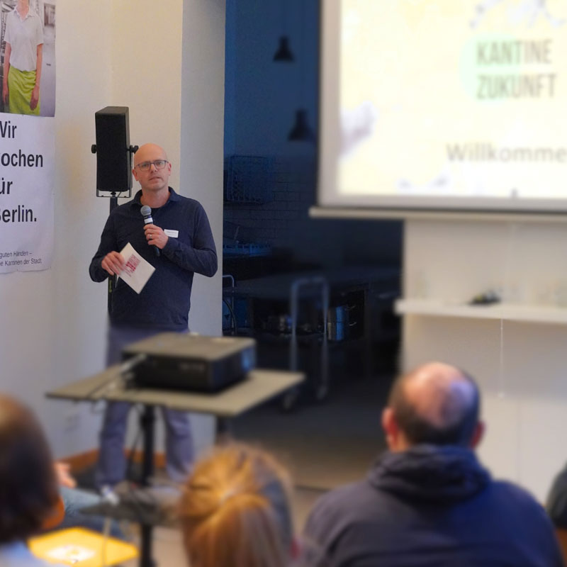 Manuel selbst gab einen Überblick über die Arbeit von Kantine Zukunft und erklärte den Ablauf der Kantinen-Werkstatt, die als zentrales Element des Projekts fungiert. Dabei wurden nicht nur Erfolge gefeiert, sondern auch Herausforderungen offen diskutiert, was zu einer lebendigen und erkenntnisreichen Atmosphäre beitrug.