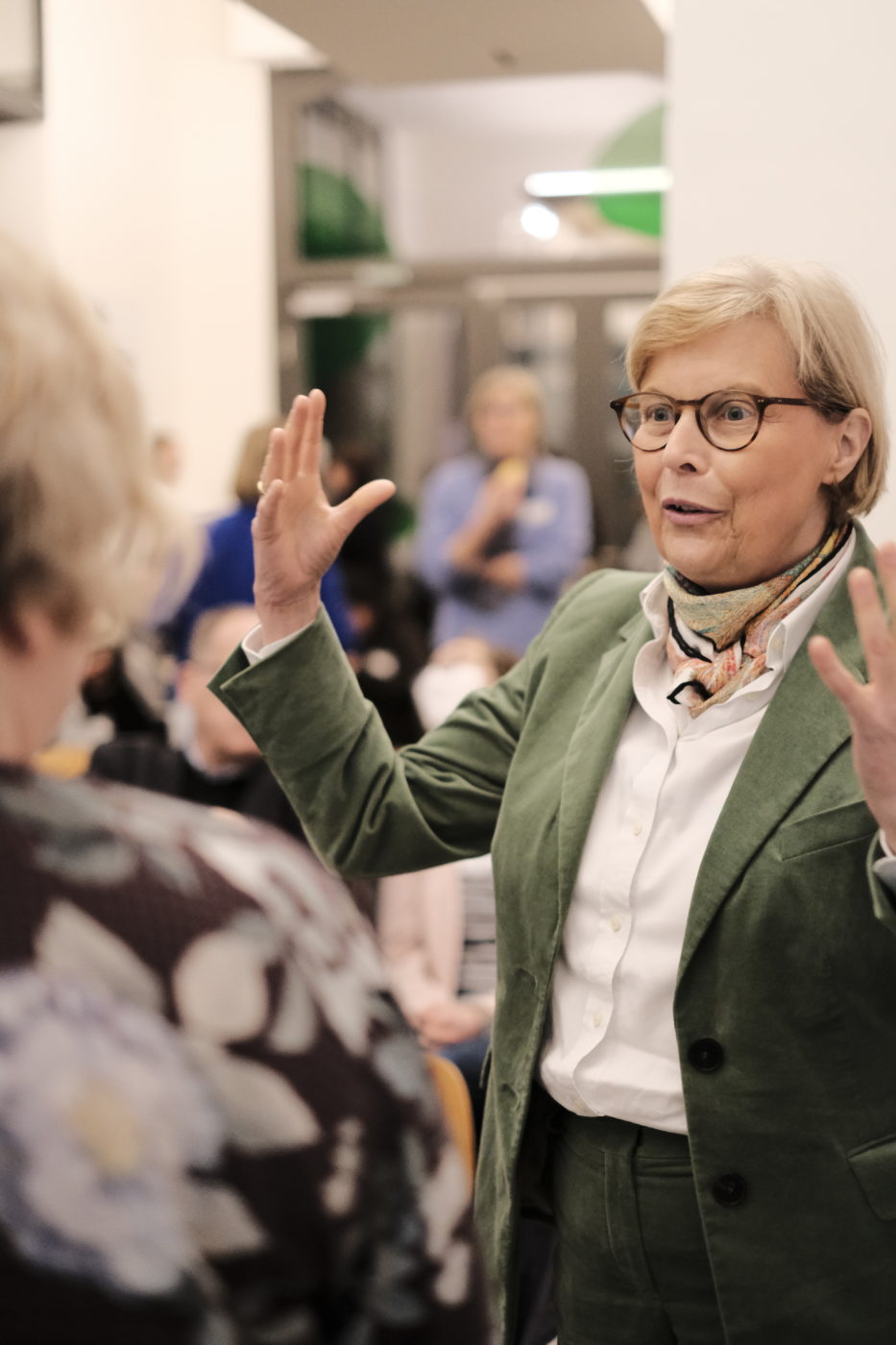 Im Input zum Whole School Food Approach von Susie wurde klar: Zentrale Bausteine für Ernährungsqualität sind das Essen an sich und die räumliche Atmosphäre des Speiseortes. „Ernährung hat etwas mit Genuss zu tun, da darf auch die Tischkultur nicht fehlen“, kommentiert Steffen Wittkowske. Das greifen die Podiumsteilnehmer*innen auf und kritisieren die überwiegend schlechten Rahmenbedingungen der Essensausgabe an Schulen: Es fehle an Platz und an Zeit. In vielen Schulen Berlins folge das Mittagessen wegen des Platzmangels einem Schichtsystem. So auch in der Carl Schurz Schule. Hier bleiben den Kindern im Schnitt nur 15 Minuten Zeit zum Essen. Auch Dorothee Everding spricht aus Erfahrung: „Wenn bei Sanierungen der Schulgebäude aus den 1970er Jahren nur Aufwärmküchen vorgesehen sind, weil das vermeintlich günstiger ist, dann geht der Schuss nach hinten los. Der Wille der Caterer ist wichtig!“ Als ehemaligen Realschullehrerin und stellvertretende Schulleiterin führte sie zahlreiche Schulprojekte in den Bereichen Nachhaltigkeit und Schulentwicklung durch. Seit Januar 2022 ist sie Projektmanagerin des EU Horizon 2020-Projekts SchoolFood4Change bei der Stadt Nürnberg. Sie nimmt beim Kantine-Zukunft-Talk die Schulverwaltung(en) in die Verantwortung. Diese müssten adäquate Rahmenbedingungen schaffen. Das könne nicht die Aufgabe von Schulleitungen oder Lehrenden sein, so Dorothee Everding weiter.