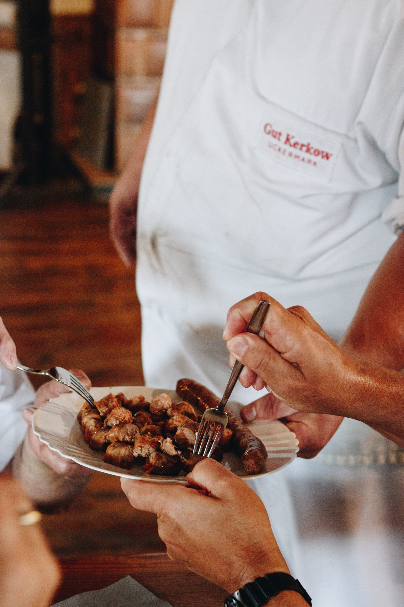 Auf Gut Kerkow hatten wir die Gelegenheit, insbesondere die Bio-Tierhaltung und handwerkliche Fleischverarbeitung in den Blick zu nehmen. Wir sind raus auf die Weide, haben bei den Ställen spannende Einblicke in die Mutterkuhhaltung erhalten und zwischendurch noch Halt bei den Schweinen gemacht.