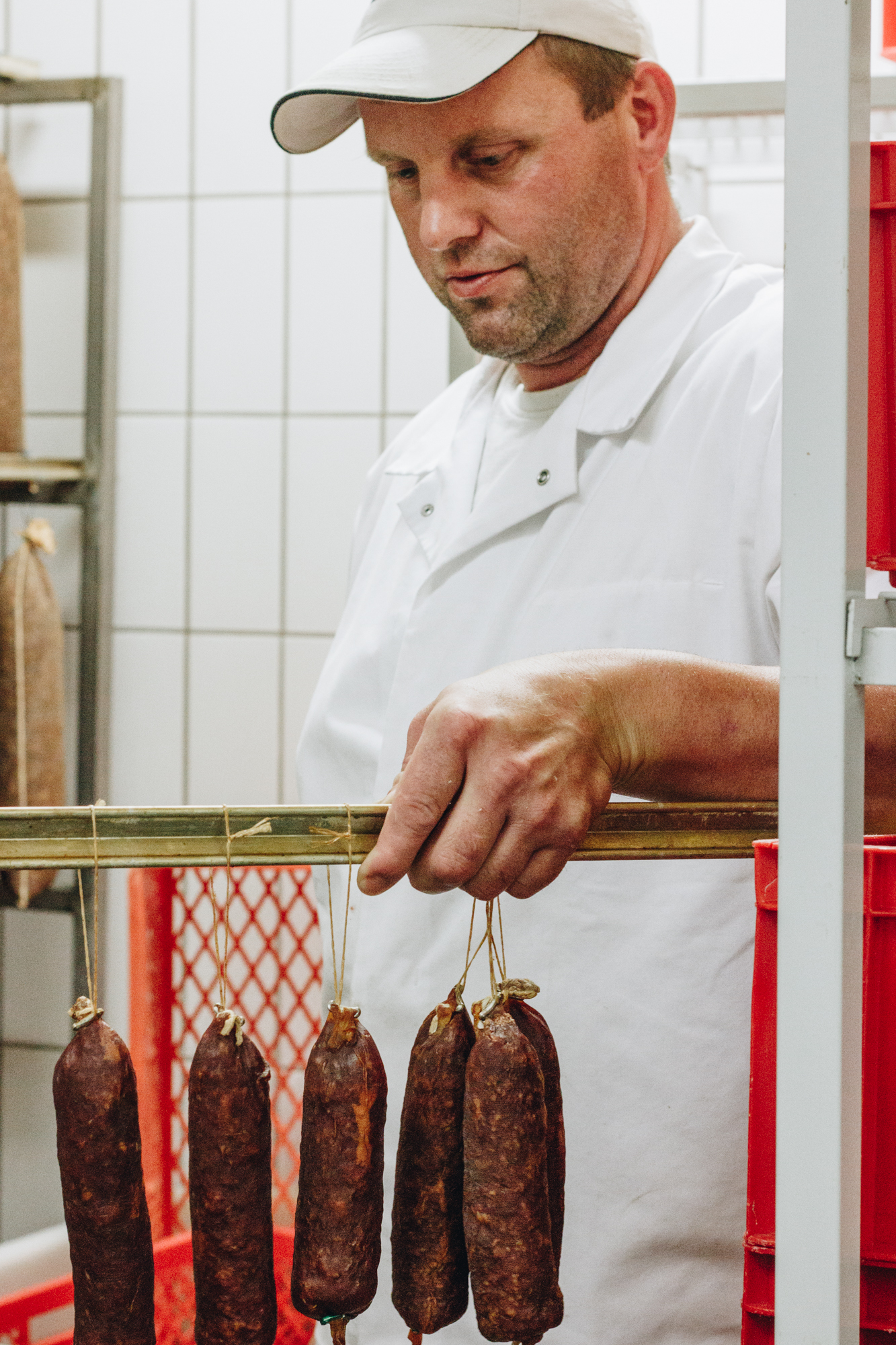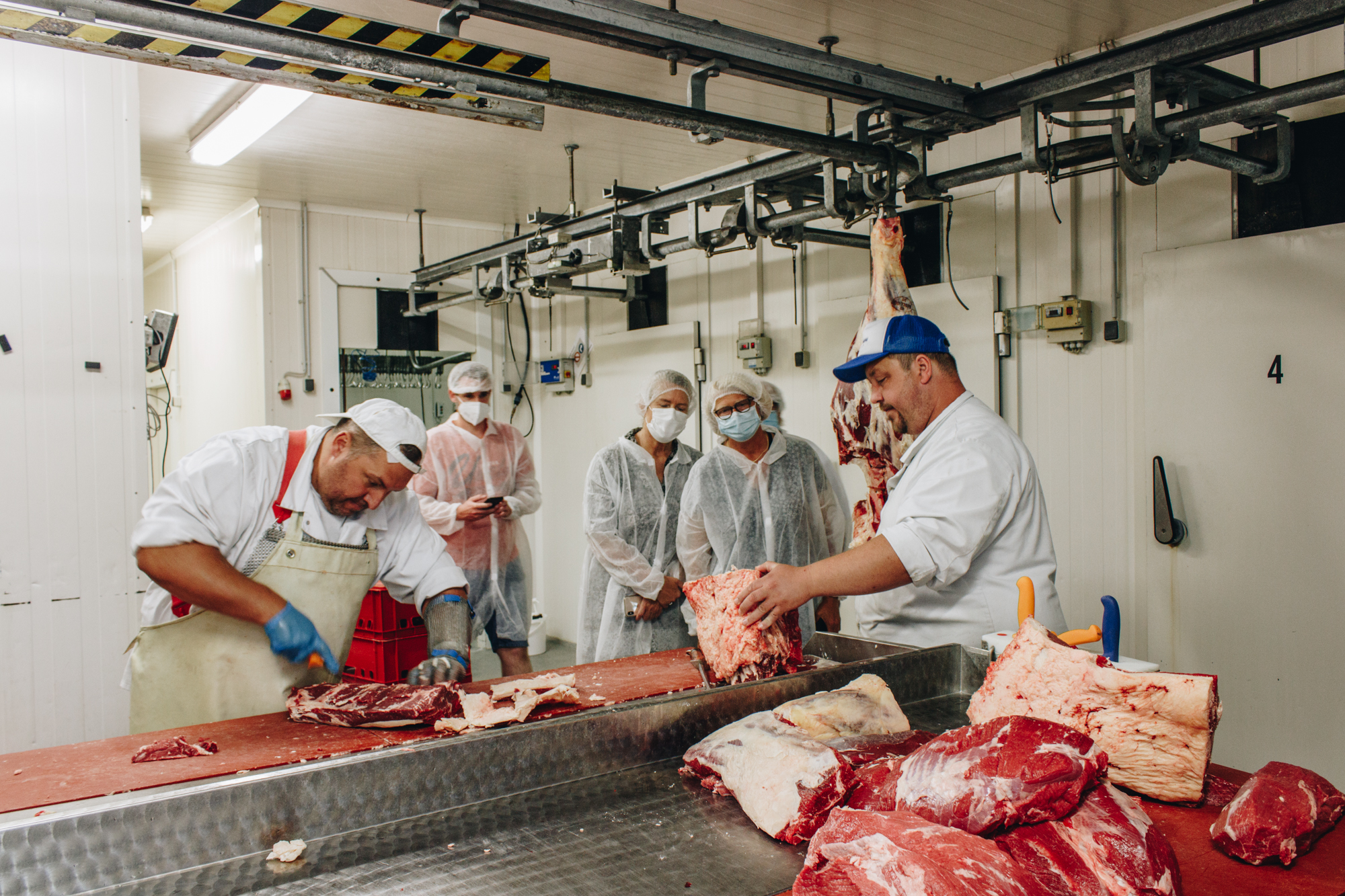 Nach einer Verkostung verschiedener Wurstsorten (die Salsiccia war definitiv unser aller Favorit) gab es außerdem einen geführten Rundgang durch die handwerklich geprägte Metzgerei. Hier wurden die Ärmel hochgekrempelt und wir haben mit angepackt. Teilnehmende hatten die Möglichkeit die Produktion von Anfang bis Ende nachzuvollziehen und ein paar Wurstprodukte selbst herzustellen. Am Ende des Ausfluges gab bei einer Runde Kaffee und Kuchen natürlich noch Zeit zum Austausch und zur Diskussion.