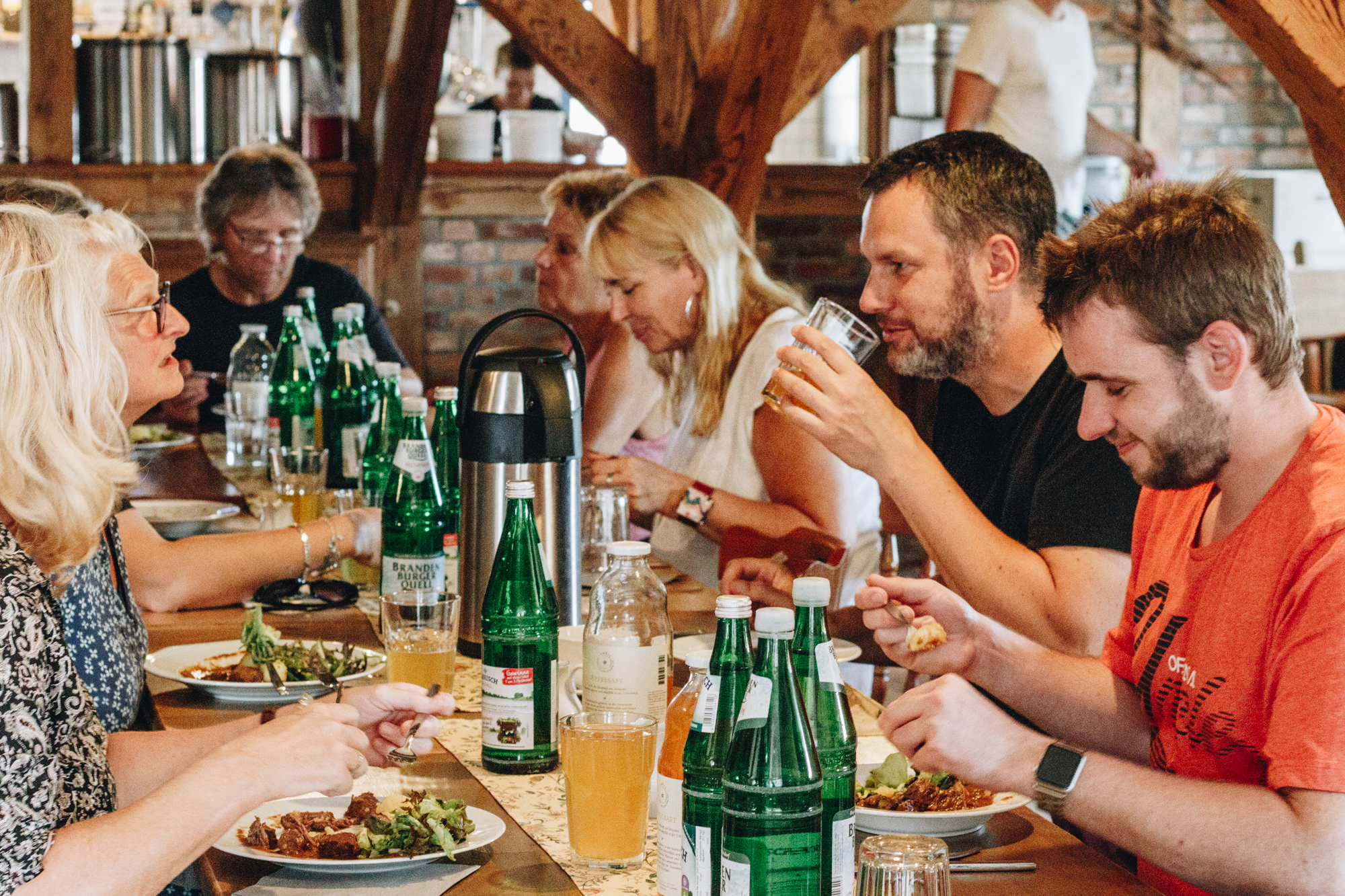 Am Freitag, 13. August 2021 haben wir zusammen mit der Fördergemeinschaft Ökologischer Landbau zehn Berliner Kantinenakteur*innen zum Gut Kerkow in die schöne Uckermark mitgenommen, um Kochjacke gegen frische Landluft einzutauschen und hinter die Kulissen der Bio-Landwirtschaft zu blicken. Mit dabei waren Köch*innen und Küchenleiter*innen aus KiTas, Betriebsrestaurants, einem Fortbildungsinstitut und einer Pflegeeinrichtung. Die Teilnehmer*innen hattet einen aufregenden und ereignisreichen Tag, denn wo ließen sich die Besonderheiten der ökologischen und insbesondere der biologisch-dynamischen Landwirtschaft besser erleben als direkt auf dem Hof?